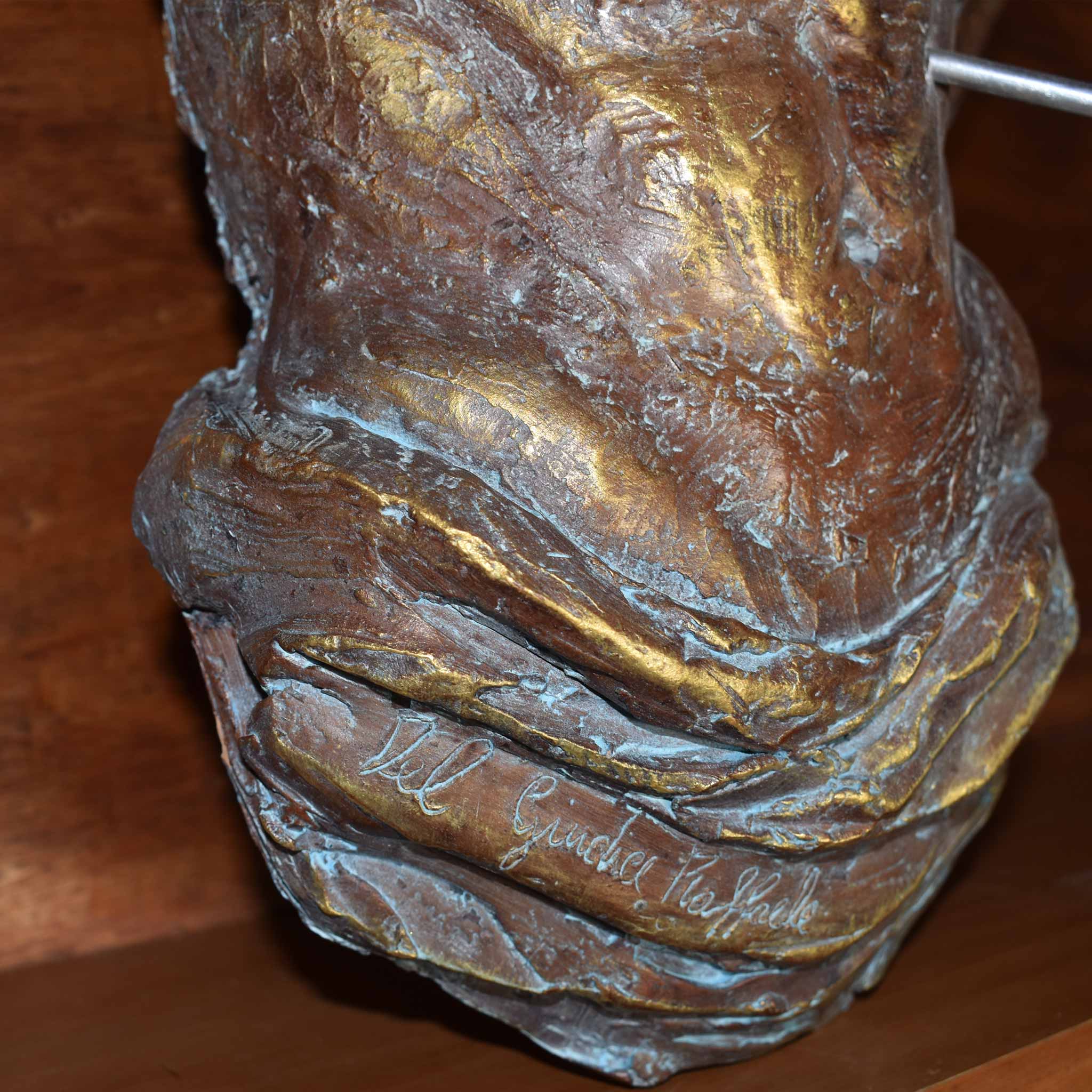 L’artista Del Giudice Raffaele ha deciso di rendere omaggio al santo realizzando una scultura in argilla che raffigura il busto del santo durante la sua esecuzione. L’artista si rifà ai modelli raffigurativi proprio dell’arte cristiana, in particolare il “San Sebastiano” di Mantegna e il “martirio di San Sebastiano” di Signorelli, riprendendone sia la posa che la resa volumetrica del corpo ma soprattutto il tema del martirio.